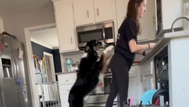 Na snimku, Bejli se najpre podigao na zadnje noge i šapama je upozorio vlasnicu da je u opasnosti. Zatim je pomogao da se smesti na pod dok je prala sudove, a potom je otišao do frižidera, donoseći joj flašu vode.