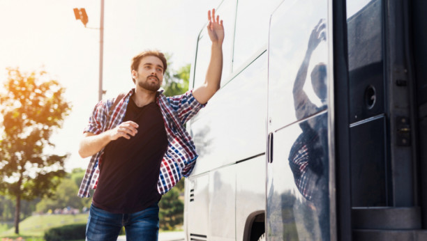 Putnici obaveste vozača i ovaj stane i otvori vrata. Mujo uđe i zahvali: