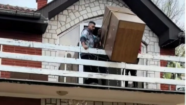 ''ALA STE GA OPRAVILI, SVAKA VAM ČAST'' Srbi pokušali da spuste ormar preko terase, a onda se desilo nešto skroz neočekivano! (VIDEO)