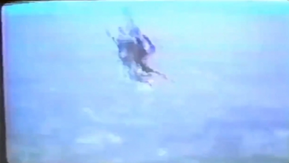 Snimci sa njegove kamere pokazuju kako je prvo uhvatio prizor učenika i instruktora kako skaču s padobranom pre nego što su povukli padobran i počeli kontrolisano spuštanje na zemlju.
