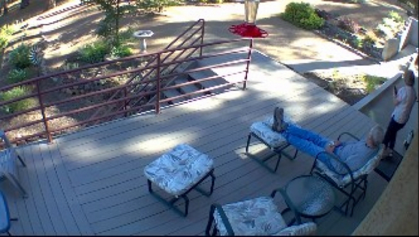 Snimak, koji je na TikToku podelila Victoria Payne, prikazuje čoveka koji se u večernjim satima opuštao na stolici ispred kuće, kada se iznenada pojavio medved na stepenicama.