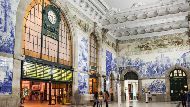 Zidovi i plafoni su ukrašeni sa više od 20.000 pločica koje prikazuju značajne trenutke u portugalskoj istoriji, oslikane u plavo-belom „azuleho“ stilu od strane Horhea Kolasa. Nijedan put za Porto nije potpun bez posete ovom mestu.