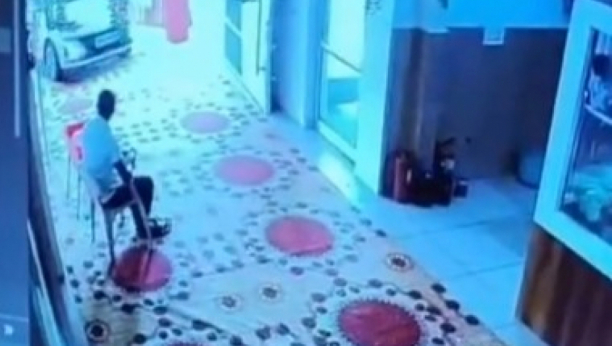 Na snimku, koji se velikom brzinom širi internetom, vidi se muškarac koji sedi na stolici, potpuno nesvestan da mu sledi nezgoda koju sigurno neće zaboraviti.