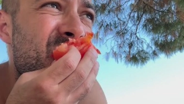 Naime, objavio je video u kom leži na plaži i jede – hleb, paštetu i paradajz. Uz snimak je napisao: