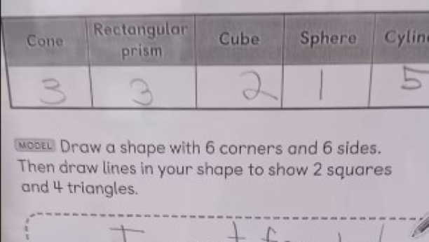 Naizgled jednostavan domaći zadatak tražio je da se nacrta lik sa šest uglova i šest stranica, a unutar njega da budu prikazana dva kvadrata i četiri trougla.
