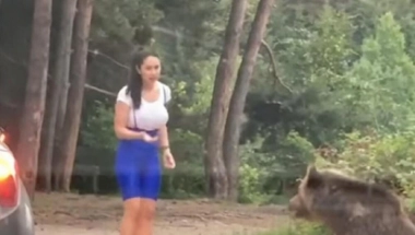 Na snimku se čuje i osoba koja snima kako komentariše: “Moram ovo da vidim. Drži nešto u ruci”. Trenutak kasnije, devojka se opasno približila, a šumska zver munjevito reagovala.