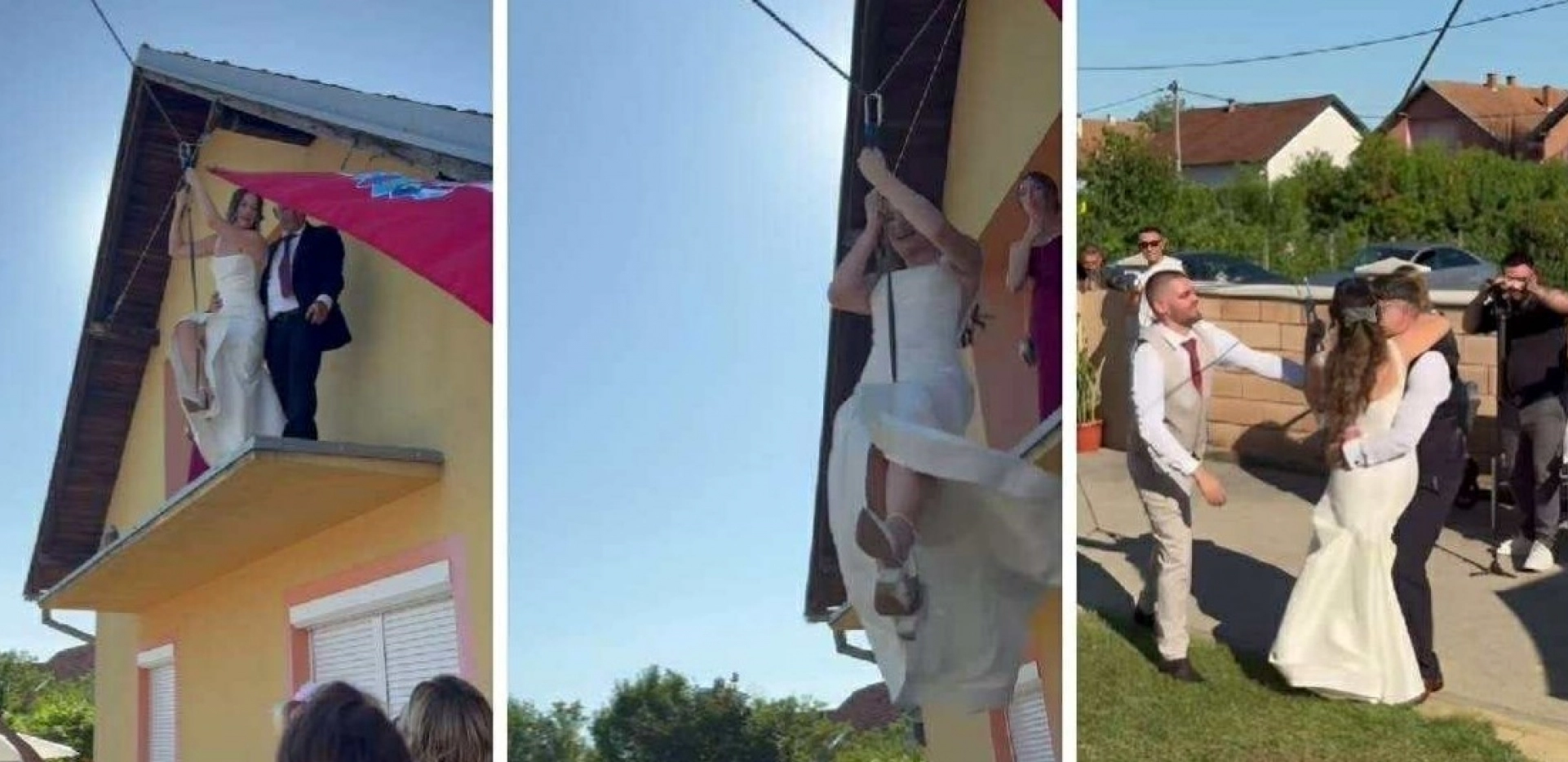 Mlada se na venčanju pojavila na način koji niko nije očekivao – ziplajnom se spustila pravo do mladoženje!