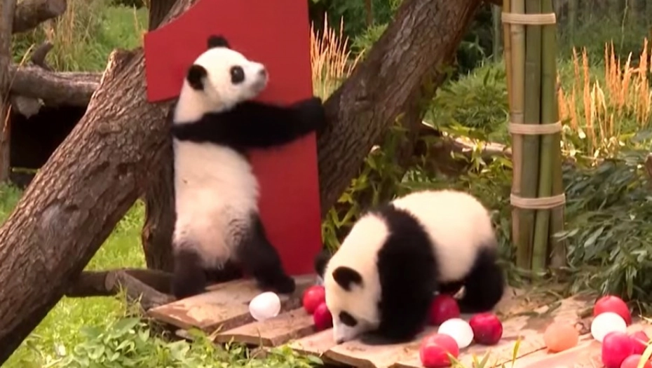 Rođene 22. avgusta 2024. godine, ove pande, sestre bliznakinje, poznate na kineskom kao Meng Hao i Meng Tijan, imale su rođendanske poslastice koje su uključivale šarene sladolede i bambusovu "sveću", prenela je Sinhua.