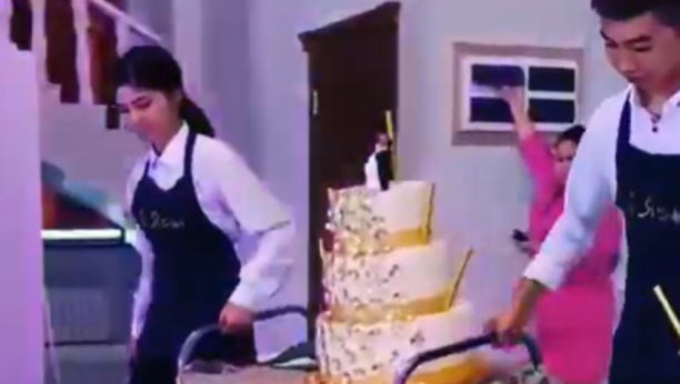 Snimak, za koji se veruje da je nastao u Kazahstanu, prikazuje trenutak kada mladenci ostaju bez svoje svadbene torte – simbola ljubavi i zajedničkog života.