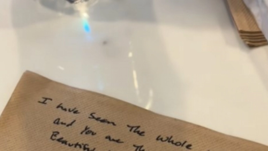 U videu, koji je Stef Borer podelila sa svojih preko milion pratilaca na TikToku, pojavljuje se papirna salveta sa misterioznom porukom: „Video sam ceo svet i ti si najlepša žena na svetu.“ Poruka je bila potpisana, ali potpis nije bio čitljiv.
