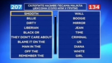 Na zadatku gde je trebalo spojiti naslove pesama legendarnog Michael Jacksona, Mile je na svako pitanje davao identičan odgovor – „tajm“ (time). Iako nijedna od ponuđenih pesama, osim poslednje, nije imala takav završetak, on je uporno ponavljao istu reč, nadajući se da će pogoditi.