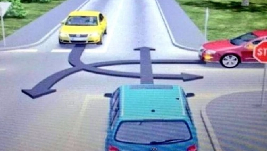 Zuti i plavi imaji liniju zaustavljanja gde je obavezno zaustaviti vozilo, crveni ima prvi prolaz pa za njim plavi koji dolazi zutom sa desne strane pa zuti ide treci. Darko Lazic bi u ovom slucaju da vozi plavog mercedesa sa 150km/h proleteo kroz raskrsnicu, udario crvenog koji nije stao da propusti jaceg i bacio ga na zutog koji je pogresio sto je uopste i krenuo od kuce! 🙄