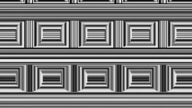 Slika prikazuje 20 prugastih crno-belih kvadrata na jednako prugastoj pozadini. Iako na prvi pogled izgleda kao obična mreža kvadrata, unutar slike zapravo se krije 16 krugova. Možete li ih pronaći?