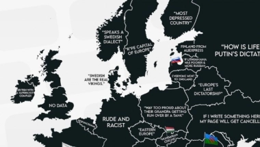 Na karti pod naslovom "Kako uvrediti Evropljane u jednoj rečenici", svaka država dobila je svoj opis baziran na stereotipima, istorijskim nesuglasicama i nacionalnim osetljivostima.