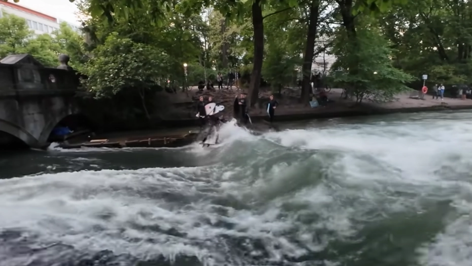 Ajzbahski talas (Eisbach Wave), koji se formira na mestu gde voda kanala teče preko betonske ploče, bio je zatvoren ranije ove godine na nekoliko meseci nakon što je 33-godišnja surferka iz Minhena poginula.
