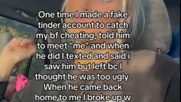 U objavi na društvenim mrežama otkrila je da je posumnjala u njegovu vernost i odlučila da deluje a da ga ništa ne pita. Umesto da ga suoči sa optužbama, Emi je napravila lažni profil na Tinderu. Na svoj profil stavila je fotografije druge devojke, a zatim mu je poslala poruku.