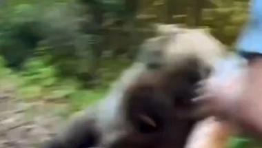Iako nije jasno šta se tačno dogodilo, ubrzo vidimo da medved beži u šumu, dok pretpostavljamo da je muškarac preživeo „bliski susret“ sa divljom životinjom.