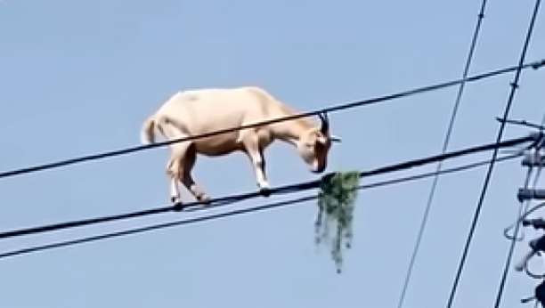 Društvenim mrežama odnedavno kruži snimak koji je korisnike ostavio u čudu. Na snimku se vidi koza koja se nalazi na visini od preko šest metara. Ona stoji na visokonaponskim žicama dalekovoda i mirno pase lišće.Video, za koji se navodi da je nastao u brazilskom gradu Seara, prikazuje kozu koja bez trunke nesigurnosti, "balansira" na žicama dalekovoda, dok ispod nje prolaze ljudi i automobili, kao da se ništa neuobičajeno ne dešava.