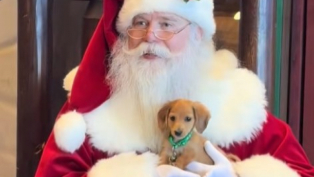 DIRLJIV TRENUTAK KOJI JE OSVOJIO SRCA Pogledajte reakciju psića koji prvi put vidi Deda Mraza - kao sa praznične razglednice! (VIDEO)