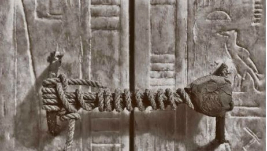 Fotografija prikazuje čuveni egipatski pečat na grobnici kralja Tutankamona, mladog faraona 18. dinastije. Snimak pečata načinio je 1922. godine arheolog Hari Barton, poznat i kao „Faraonov fotograf“, koji je uslikao pečat neposredno pre nego što su njegove kolege otvorile grobnicu. Kanap i amblem na okamenjenom blatu kojim je grobnica bila zapečaćena, pre toga nisu bili dirnuti čitavih 3245 godina.