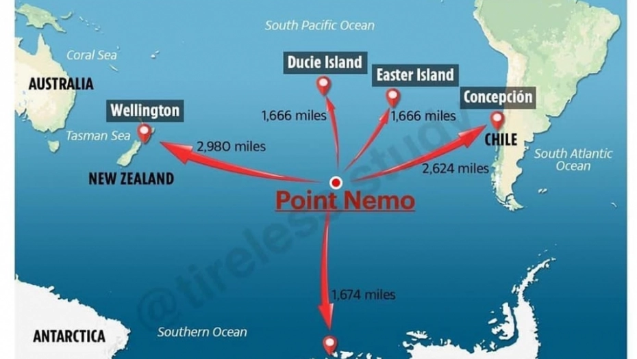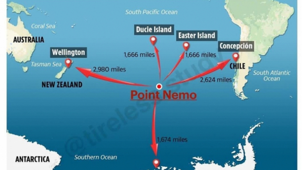 Radi se o Tački Nemo, delu okeana kojem se ne može prići, oblasti koja se nalazi u centru južnog Pacifika, najdalje od kopna i ljudi od bilo kog drugog mesta na Zemlji. Tačka Nemo se nalazi tačno između Australije, Južne Amerike i Antarktika. Od Tačke Nemo do najbližeg kopna potrebno je preko 2.700 kilometara, a to su ostrva Pitkern na severu, Uskršnja ostrva na zapadu i Antarktik na jugu.