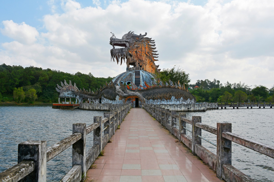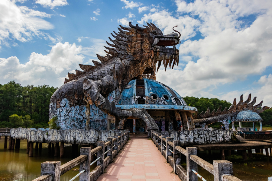 Kako izveštava „ Atlas Obscura “, vodeni park Ho Thui Tien otvoren je 2004. godine - mada sa nekoliko problema. Koštao je ekvivalent od tri miliona dolara, ali nije bio gotov kad se otvorio. Srce parka bila je trospratna, prohodna skulptura zmaja usred veštačkog jezera. Unutra su se nalazili akvarijumi u kojima su bile ribe i već pomenuti krokodili. U zmajev stomak možete ući preko tri mosta.