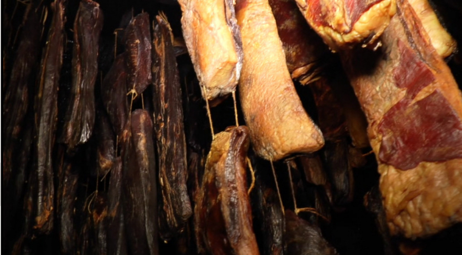 - Najvažnije da se meso pravilno usoli i ostavi da odstoji oko nedelju dana. Suvo bukovo drvo i novembarski mraz koji svakog jutra okuje selo ispod Murtenice jedna su od tajni kvalitetnog suvog mesa. Za nastajanje najbolje pršute i slanine, zavisi od vremenskih uslova u proseku od petnaest do mesec dana - kaže Veliša.