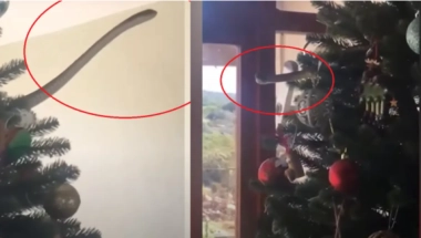 Rob Vajld je kazao za CNN kako je njegova supruga pretpostavila da je na jelci negde skriven miš, no uskoro su otkrili koliko su se prevarili - s grane ih je gledala zmija.
