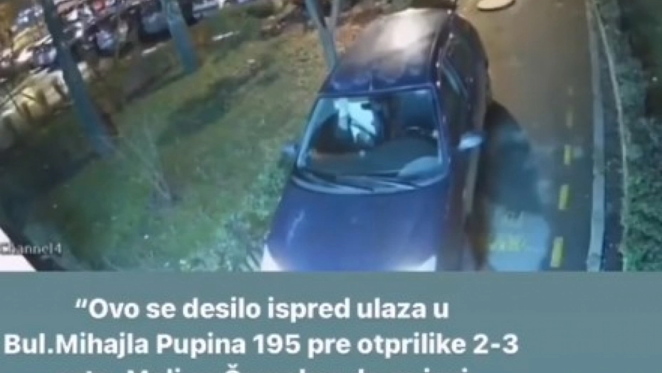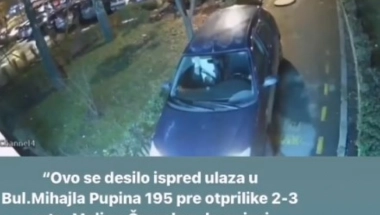 "Ovo se desilo ispred ulaza u Bulevaru Mihajla Pupina 195 pre otprilike 2-3 sata. Moli se "šumaher" da se javi predsedniku ulaza ili snimak ide u policiju".