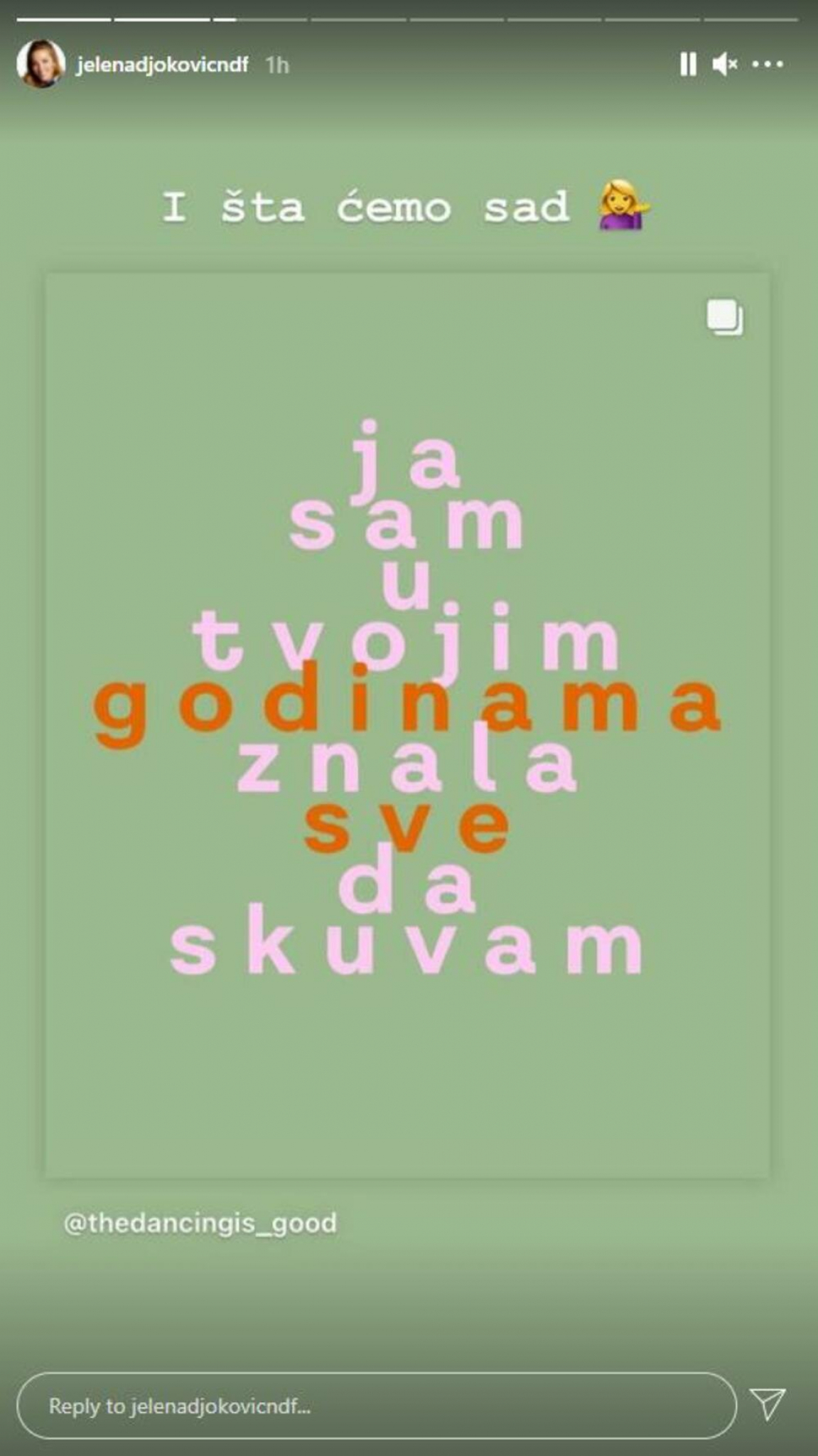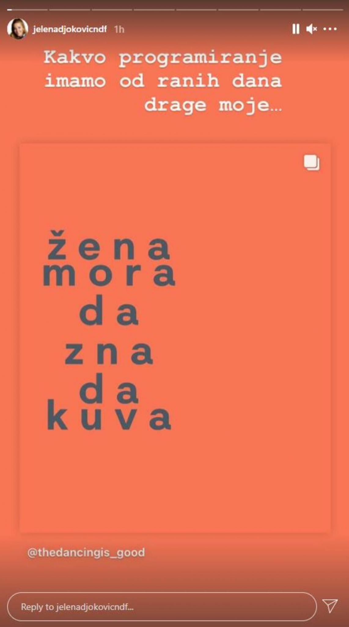 Jelena je potom objavila i ilustracijom sa svim ženama dobro poznatom rečenicom "Ja sam u tvojim godinama znala sve da skuvam" i napisala: