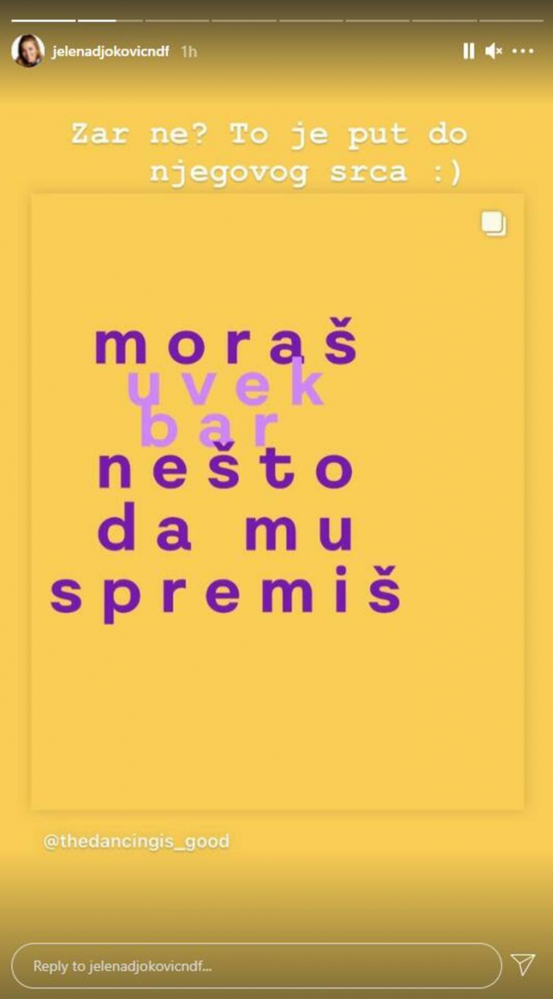 Ona je potom podelila savet naših baka "Moraš uvek baš nešto da mu spremiš" i ironično odgovorila: