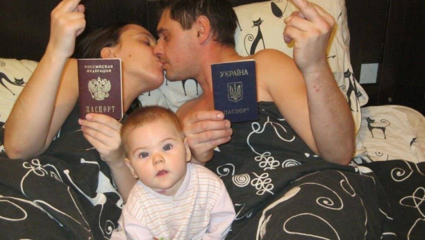 Ona drži pasoš Rusije, a on Ukrajine dok je izmedju njih njihova beba.