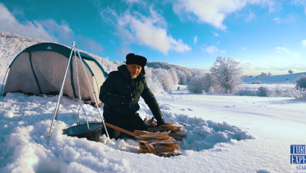 Saša je poneo šator i, naravno, kulinarsku opremu jer za pravog eksperta granice ne postoje. Nacepao je drva i uspeo da založi vatru na kojoj je napravio čorbu kako bi se ugrejao po jakoj zimi koja ga je zadesila.