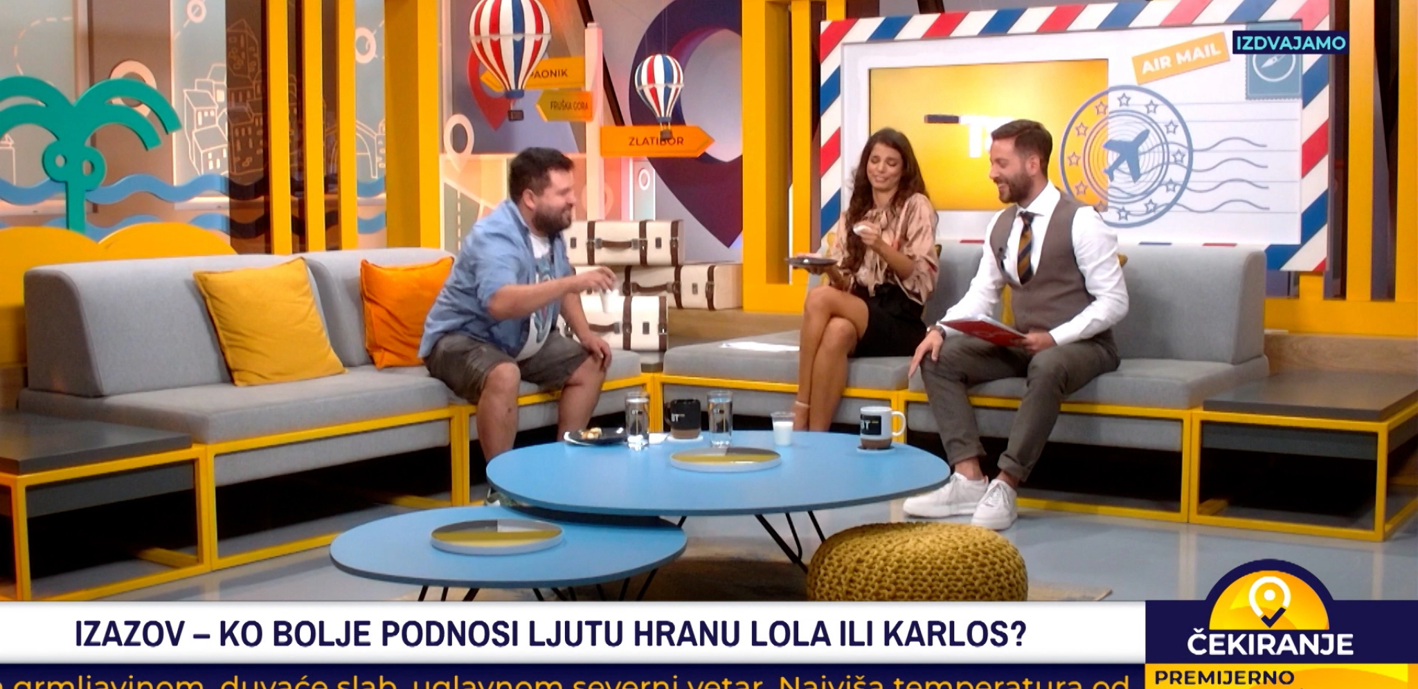 Upravo takav spoj dogodio se u emisiji „Čekiranje“ na televiziji Balkan Trip gde je voditeljka Lola Radaković izazvala najpoznatijeg srpskog Meksikanca, Karlosa Franka, na svojevrsni dvoboj sa hranom. Zadatak je bio ko bolje od njih dvoje može da podnese ljuto.