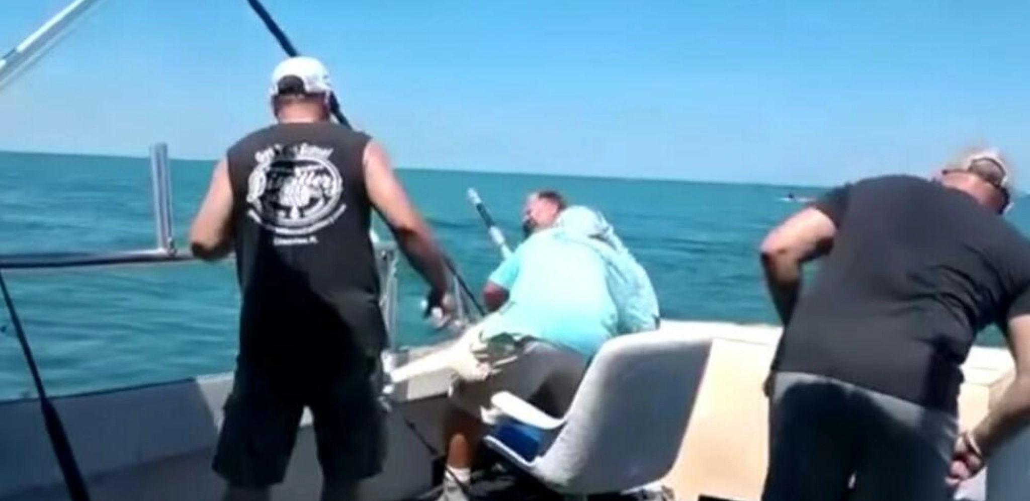 Petorica prijatelja otišla su na pecanje, kada se dan pretvorio u horor. Oni su naime upecali ni manje ni više nego ajkulu, koja ih je potom napala na čamcu, a čovek koji ju je upecao teško je povređen u obračunu s nemani.
