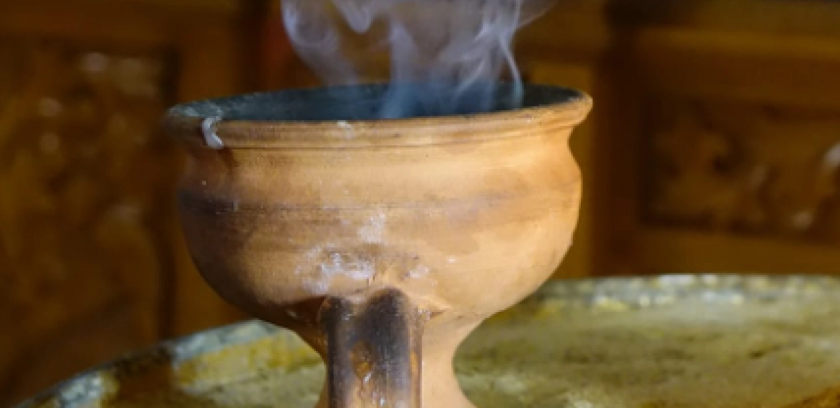 Kada se tamjan topi na žeravici, kolutovi dima dižu se ka plafonu šireći svoj prijatni miris. To podizanje dima ka plafonu simbolično predstavlja uzdizanje naše molitve ka Bogu.