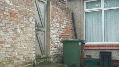 Ako se i dalje mučite, pogledajte kod prvog stepenika, u donjem uglu iza kante za smeće. Tu se sakrila siva maca kojoj viri samo glava.