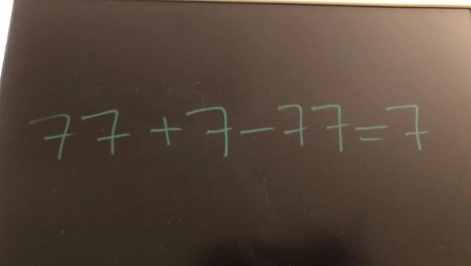 "Sastavi jednakost tako da upotrebiš: cifru 7 šest puta, jedan znak +, jedan znak - i da na kraju dobiješ rezultat 7."