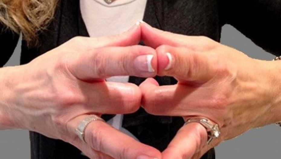 Sada sklopite ruke dlanom o dlan, zatim srednje prste sjedinite na način kako je prikazano na slici.