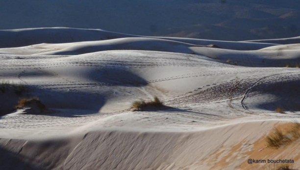 Sneg je pao u pustinjskim predelima jugozapadnog Alžira, što je rezultiralo neverovatnim scenama i fotografijama peščanih dina koje vire ispod belog pokrivača.