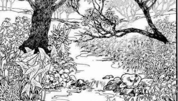 Reč je o crno-beloj fotografiji na kojoj se nalazi puno detalja, ali i pojedinih životinja sakrivenih u grmlju.