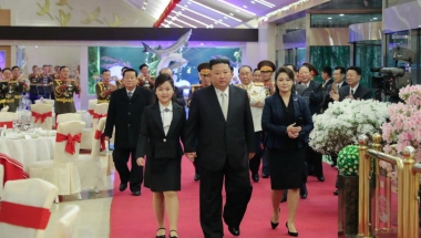 Pomenuto balističko oružje se kasnije moglo videti na paradi, a Kim Džong-un i njegova porodica su to gledali s ponosom. Kim Džong-Un je salutirao vojsci zajedno sa generalima, a njegova ćerka i supruga su uzbuđeno aplaudirali spektaklu. Ispod možete videti da privezak Kimove žene zaista liči na zloglasnu raketu.