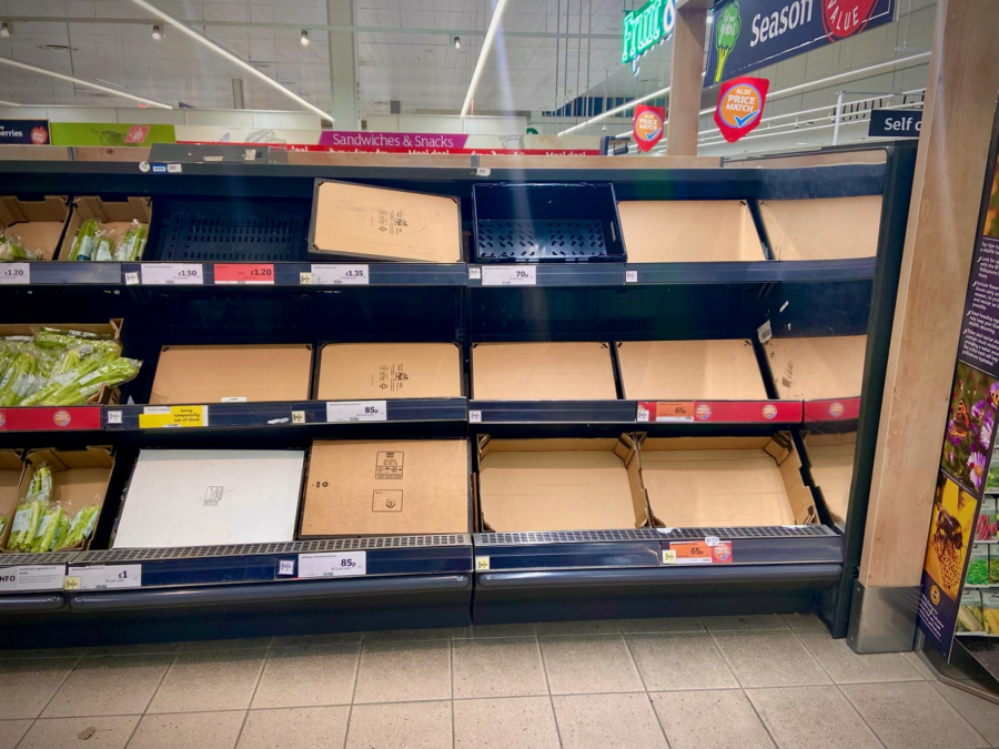 Tesco i Aldi iz predostrožnosti ograničavaju kupce na tri artikla po kupcu za paradajz, papriku i krastavce, dok Asda takođe ograničava kupce na zelenu salatu,e, brokoli, karfiol i maline, a Morrisons je postavio ograničenje od dva artikla po kupcu.