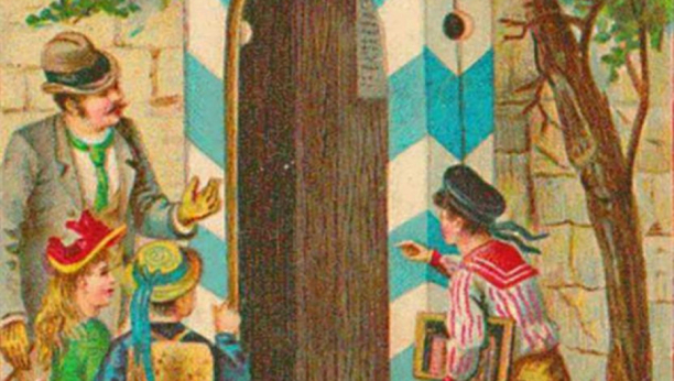 Ova stara ilustracija prikazuje oca sa troje dece kako posmatraju kućicu za vojnike u lepom zelenom okruženju. Međutim, ilustracija krije i jednog policajca, koji je vešto skriven unutar slike i samo oni sa visokim koeficijentom inteligencije će uspeti da ga pronađu.
