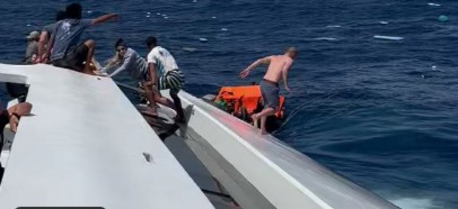 Drugi video podseća na scene iz Titanika, ostavljajući grupu da se drži za delove broda koji su razbacani po talasima. Dejvid Tejlor (53), arhitektonski tehničar iz Notingemšira, znao je da nešto nije u redu kada se probudio i video je ribu kako pliva ispred prozora njegove kabine - umesto idiličnog pogleda na nebo. Očevici su rekli da je more bilo mirno i nebo plavo kada je jahta "Carlton Kvin" iznenada počela da tone.