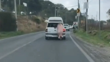 Kao što možemo da vidimo čovek je vozio svinju u gepeku automobila, a već u sledećem trenutku dolazi do neočekivanog razvoja situacije - prase elegantno izlazi iz gepeka i laganim koracima nastavlja u drugom smeru.