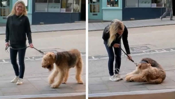 PAS ZAPEO DA UĐE U KAFANU, ODBIJA DA SE POMERI Žena ga izvela u šetnju, uzela da brani muža: Nikad ga nije tamo vodio! (VIDEO)