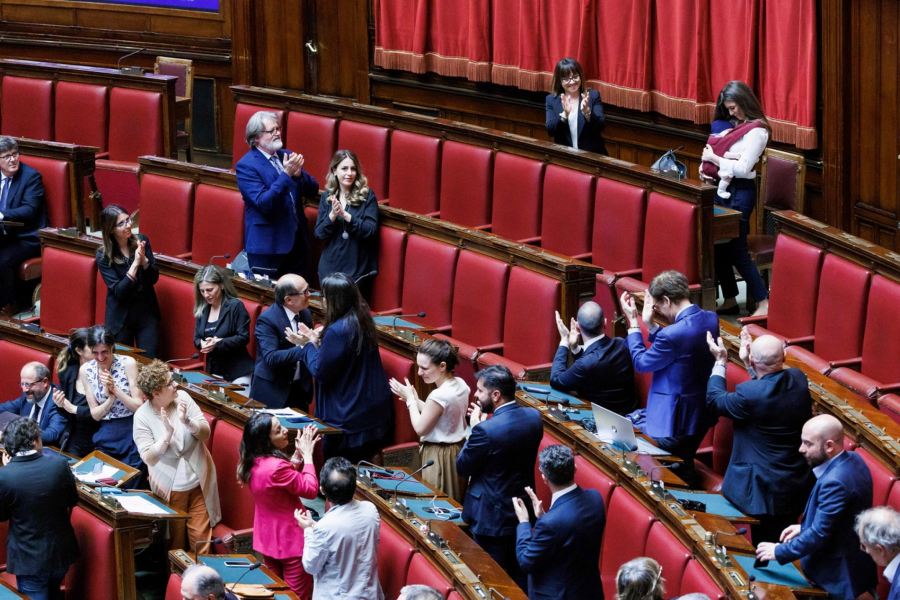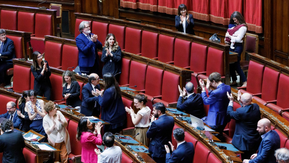 Ovakav događaj bi bio uobičajen u mnogim zemljama, ali u italijanskom parlamentu u kojem tradicionalno dominiraju muškarci izazvao je burno odobravanje poslanika, prenosi Rojters.