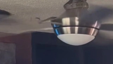 Momka je dremeža verovatno trgao čudan zvuk sa plafona, a kad je ugledao zmiju kako se izvlači iz rupe i mota oko ventilatora on je odlučio da snimi jeziv prizor.
