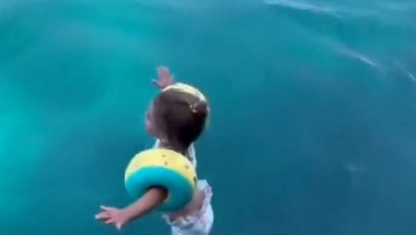 Društvenim mrežama kruži video kako otac u more baca ćerkicu koja na rukama ima samo "mišiće" za plivanje.